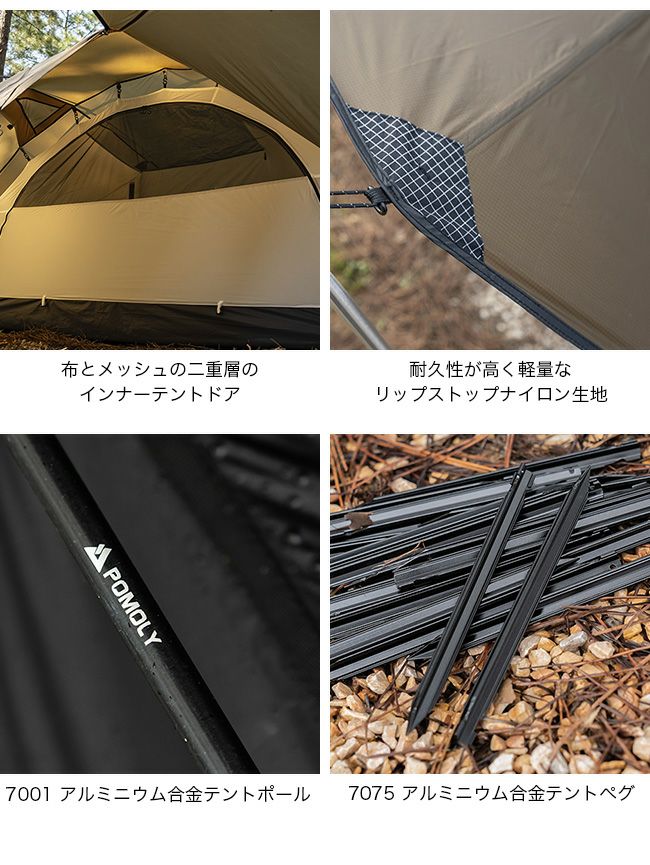 また、テントには7001アルミニウム合金製のポールを採用しており、風雨の中でも優れた安定性を発揮します。