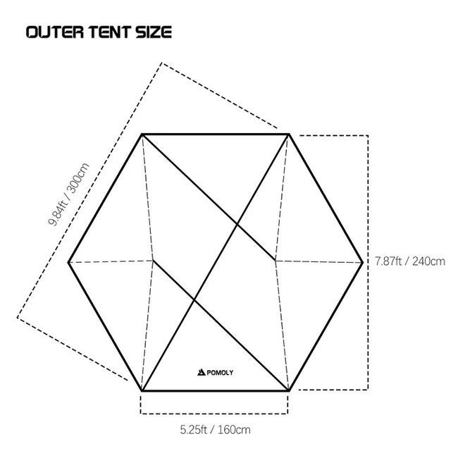 ■サイズ:300cm×240cm×高さ134cm(インナーテント高さ125cm)(収納時 40cm×16cm×高さ16cm)
