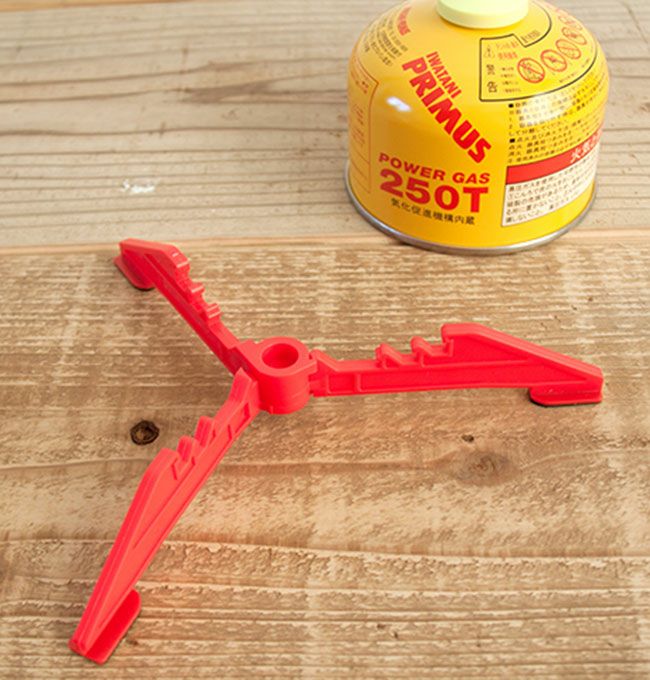 少しの凸凹地面なら安定感抜群。ガス缶直置きだとグラつくことも多かった為こんな物探してました。