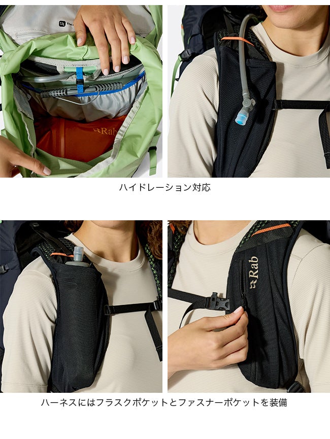 ・3Lのハイドレーションブラダーに対応した内蔵スリーブ(H2Oポート付き)