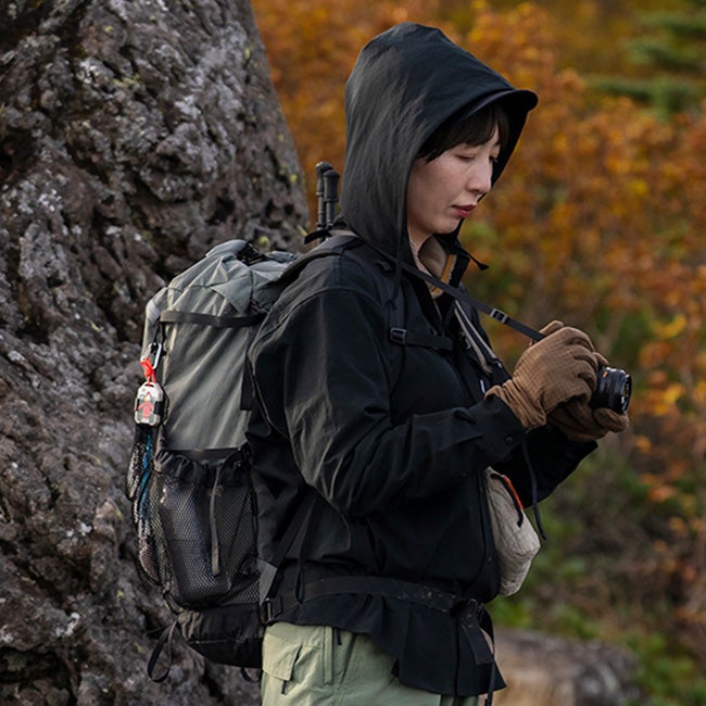 立体的で自然にフィットするフードデザインにより、余計なパーツを排した軽やかな着心地を実現しました。
