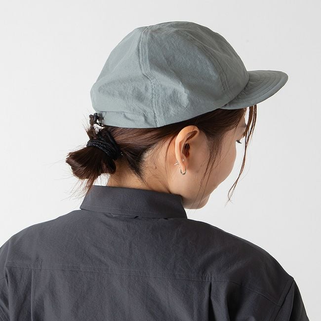キャップの本体部分には撥水性、防風性、浸透性のあるナイロン100%素材、東レのStunner®を使用しています。