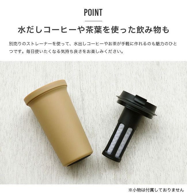 たっぷり飲める実容量390ml、倒してもこぼれない密閉性の高いフタ構造、中空二重構造などの人気ポイントはそのままに、丈夫な素材に変更し、落としても壊れない頑丈なタンブラーに仕上げました。