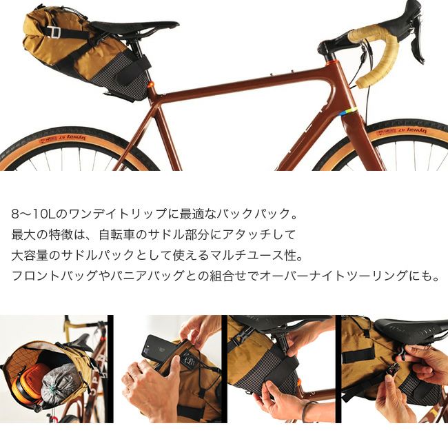 最大の特徴は、自転車のサドル部分にアタッチして大容量のサドルパックとして使えるマルチユース性。