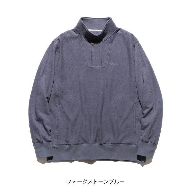 ヘンプとコットン生地をブレンドした、ハーフジップスウェット