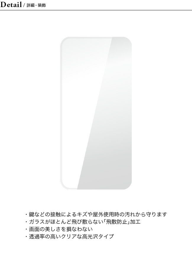 万が一ガラスフィルム自体が割れた際も、ガラスがほとんど飛び散らない「飛散防止」加工で安心。