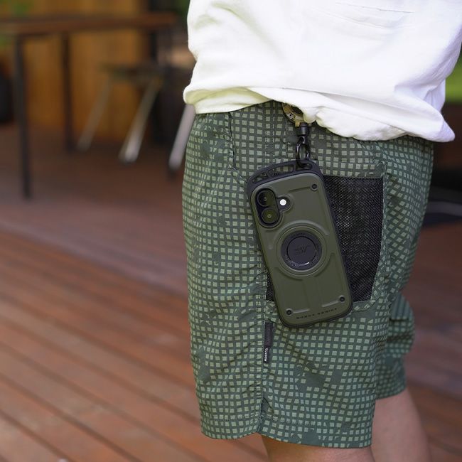 機能・耐衝撃・デザインの3点を兼ね備え、アウトドアテイストを取り入れたデザイン。
