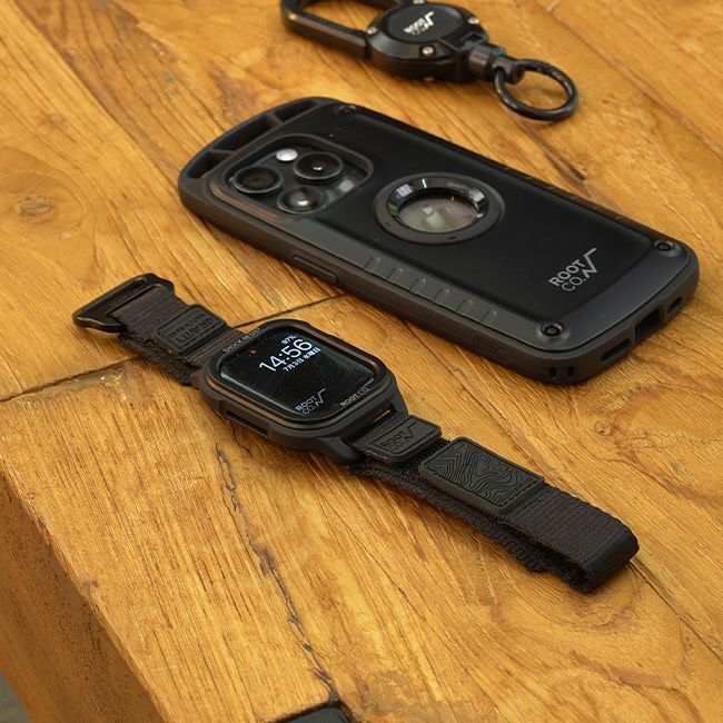 ケース上下部にROOT CO. GRAVITY Apple Watch Band. (Apple Watchバンド)専用ループを搭載。ROOT CO.オリジナルApple Watchバンド/ベルトとのコーディネートに特化したバンドループ一体型で、別途アダプター等は必要ありません。(※他社製Apple Watchバンド/ベルトとの互換性はございません。)