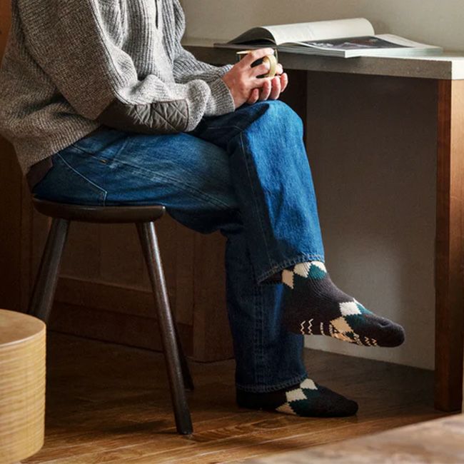 保温性とやさしい肌ざわりが特長の、アクリルとウールの混紡糸を使用したスーパーローゲージのルームソックスです。