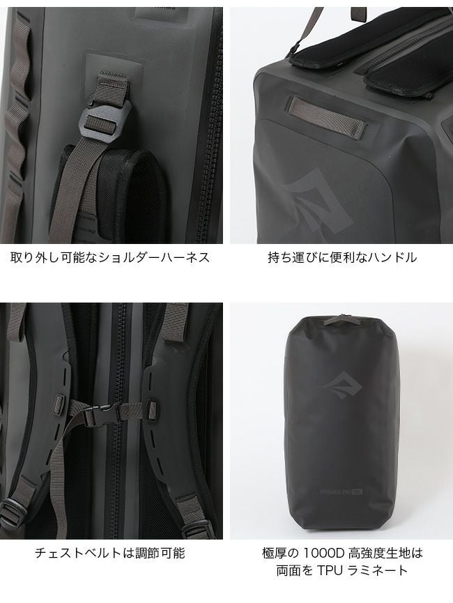 水圧試験をパスするファスナーのTIZIP®マスターシールを採用し、極厚の1000D高強度生地は両面をTPUラミネート。