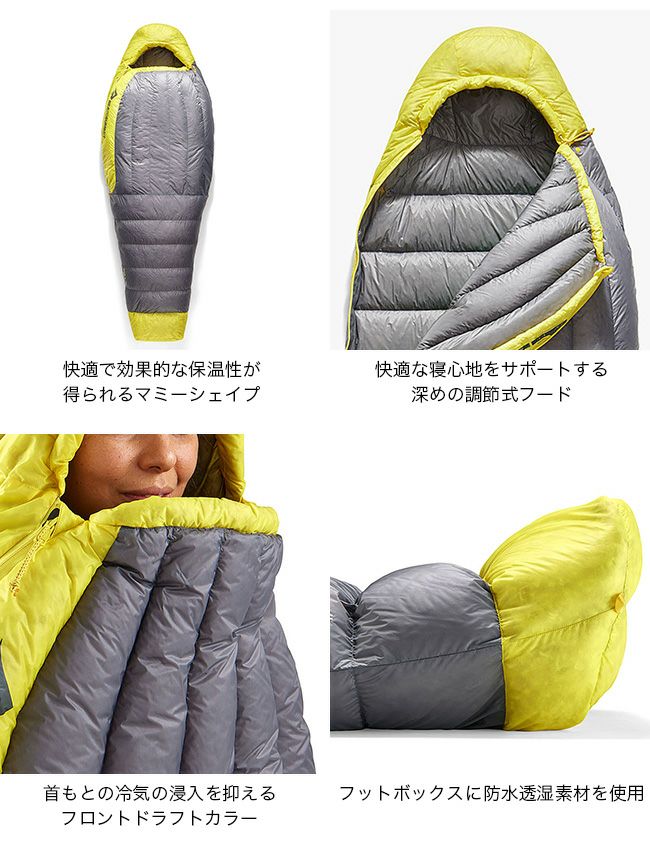 結露したテント壁面に接するフードとフットボックスには防水透湿素材を使用し、濡れによるダウンの性能低下を防ぎます。