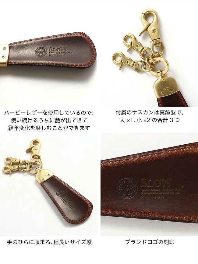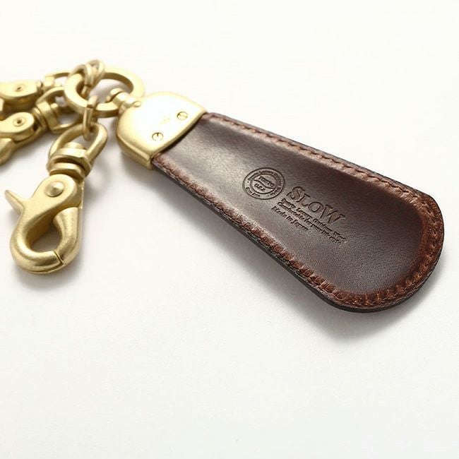 贅沢なレザーをあしらったシューホーン(靴べら)付きのキーホルダーです。