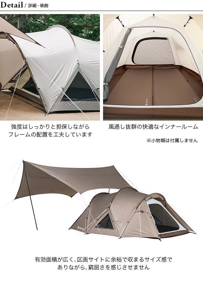 〔テント〕テント本体/75D ポリエステルタフタ・PU コーティング耐水圧1,800mm ミニマム・撥水加工・UV カット加工、インナーウォール/68D ポリエステルタフタ、ボトム/210D ポリエステルオックス・PU コーティング耐水圧1,800mm ミニマム、フレーム/A6061(Φ13mm)