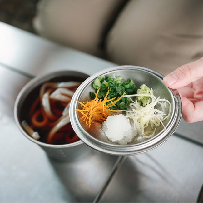 チタンシェラカップの深さと容量をアレンジし、スープなどの汁物に適した仕様にアップデート。