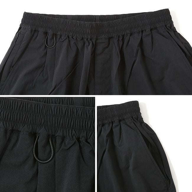 ナチュラルタッチのストレッチナイロン素材で締めつかない程よいウエスト、ゆとりを持たせたシルエットはシーンを選ばず、快適な着心地を楽しめます。