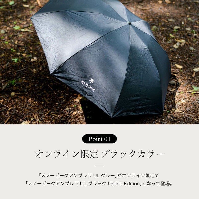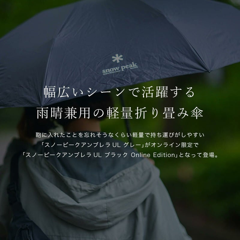 鞄に入れたことを忘れそうなくらい軽量で持ち運びがしやすい「スノーピークアンブレラUL グレー」がオンライン限定で「スノーピークアンブレラUL ブラック Online Edition」となって登場。