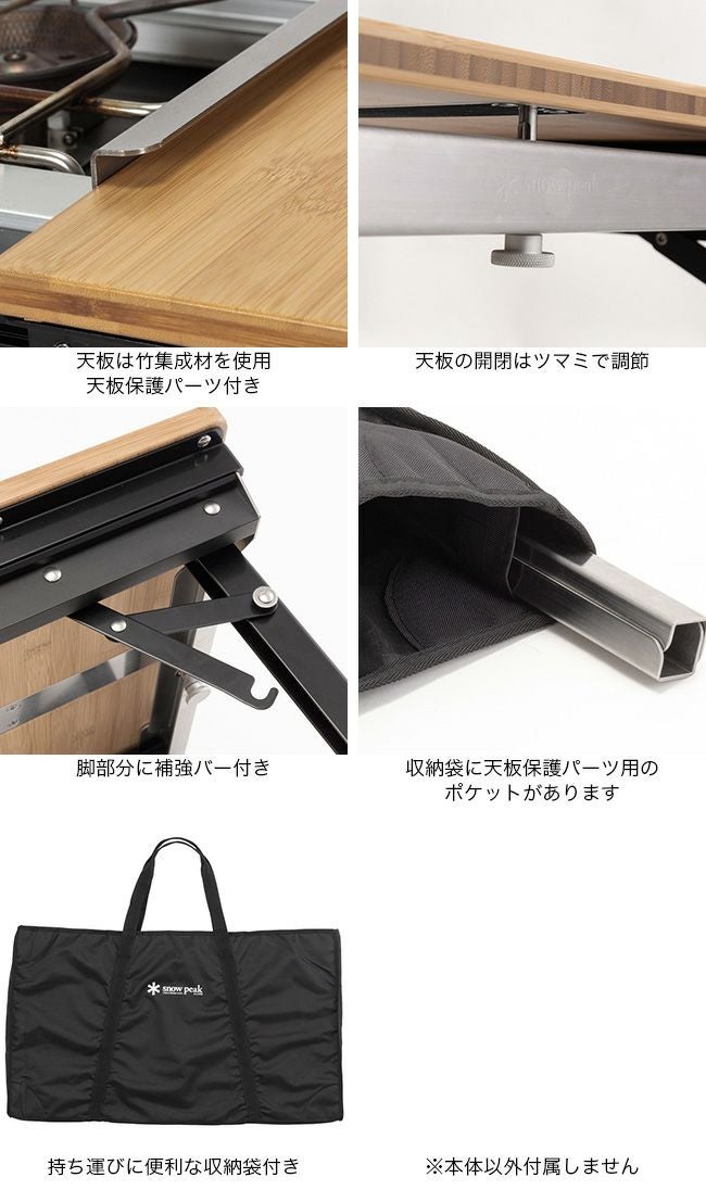 調理と食事のスペースを同時につくれる機能的で程よいサイズのテーブルがあれば、荷物を減らしながら快適なキャンプができると企画されたアイテムです。