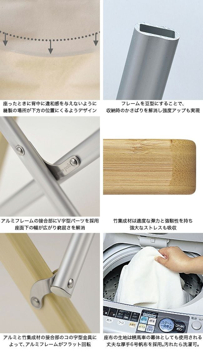 ■素材:材質:フレーム/竹集成材・アルミニウム合金、金具/ステンレス、シート/綿帆布(6号)