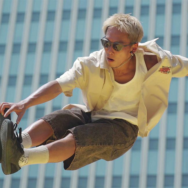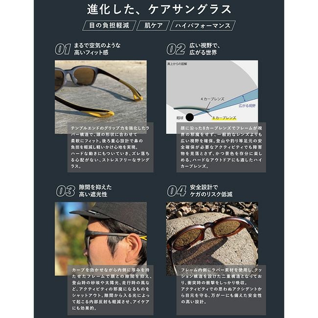 ハードな動きにもついていき、ズレ落ちる心配がない、ストレスフリーなサングラス。