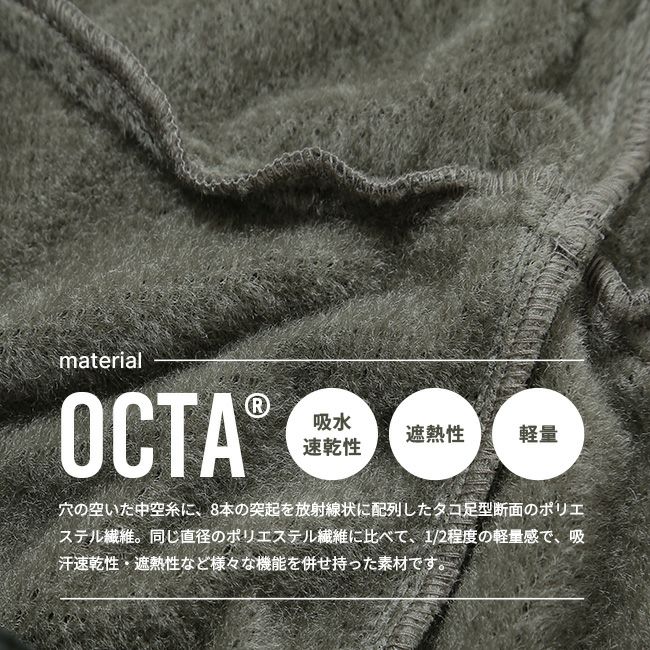 Octaの優れた通気性と吸湿発散性により、肌に心地よい着用感をもたらします。