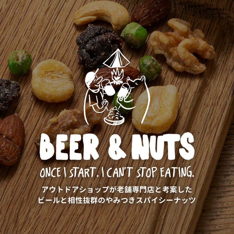 東京上野のナッツ・ドライフルーツの老舗専門店 小島屋とアウトドアショップ SUNDAY MOUNTAIN を運営するCAMPANELAがタッグを組んで、ビールとの相性抜群のスパイシーミックスナッツを作りました。