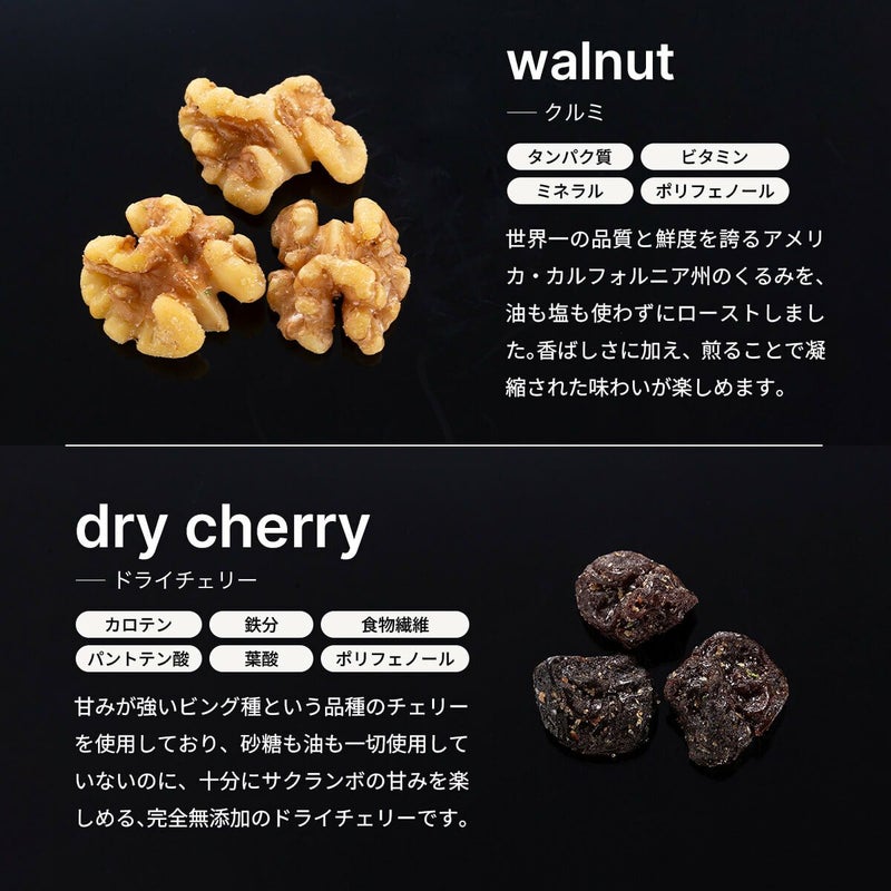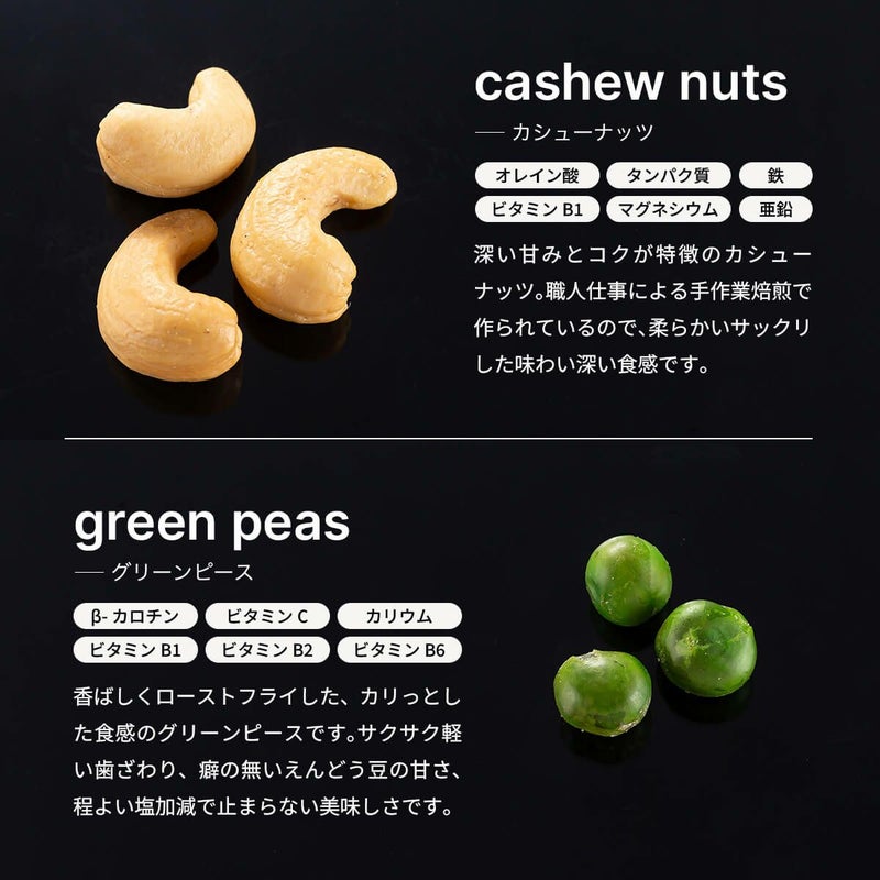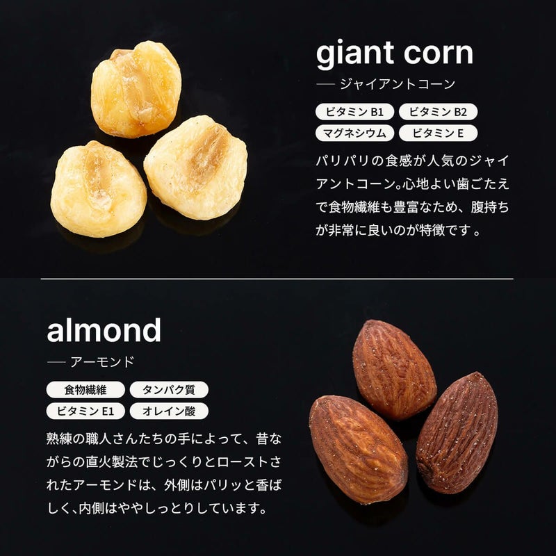 ■原材料:ジャイコーン(ペルー産)、アーモンド、カシューナッツ、くるみ、チェリー、グリーンピース、植物油、砂糖、食塩、スイートコーンパウダー、山椒、花椒、香辛料、脱脂粉乳、キチンパウダー/調味料(アミノ酸等)、香料、香辛料抽出物(一部に乳成分を含む)、着色料(黄色4号・青色1号)