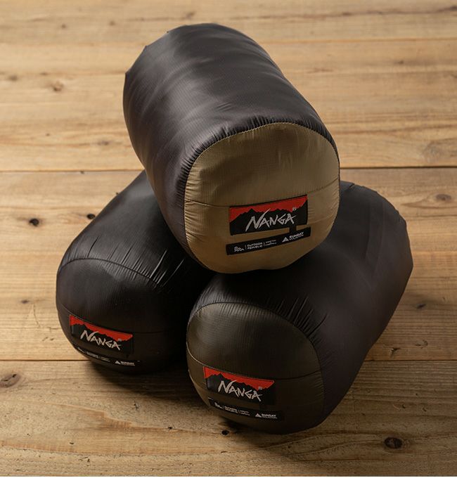 SUNDAY MOUNTAINがNANGAに別注した、ハイコストパフォーマンスなキャンプ仕様の化繊シュラフ。