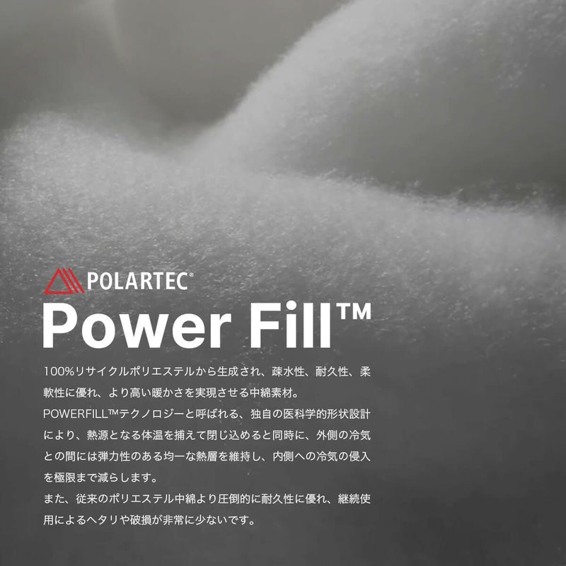 中綿には水濡れに強く、耐久性とドレープ性に優れたPOLARTEC® POWERFILL60gを採用。