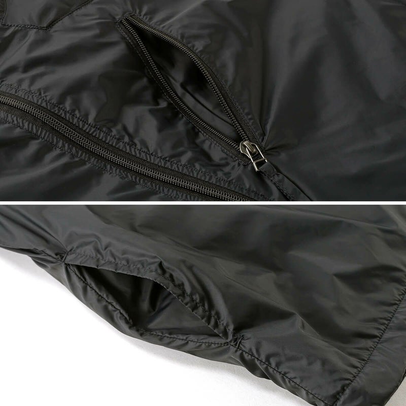 両サイドのハンドポケットに左胸のジップポケットと、全部で3つのポケットを配置。胸のジップポケットの内側に全体を押し込むことで、パッカブル仕様にもなります。