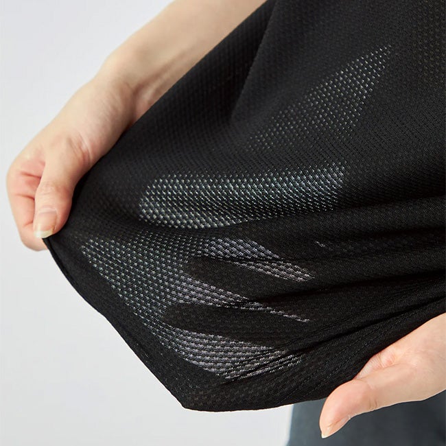 軽量なメッシュ素材の為、通気性・断熱性・肌離れの良さをお楽しみください。