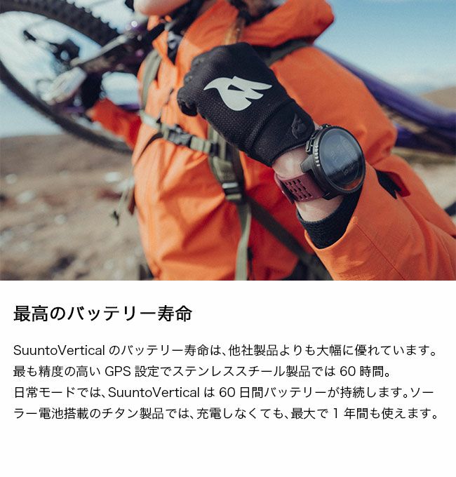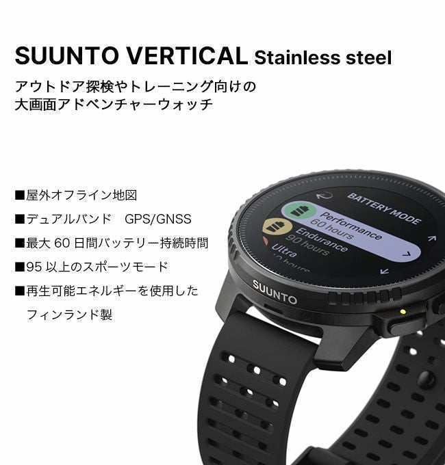 日常モードでは、SuuntoVerticalは60日間バッテリーが持続します。