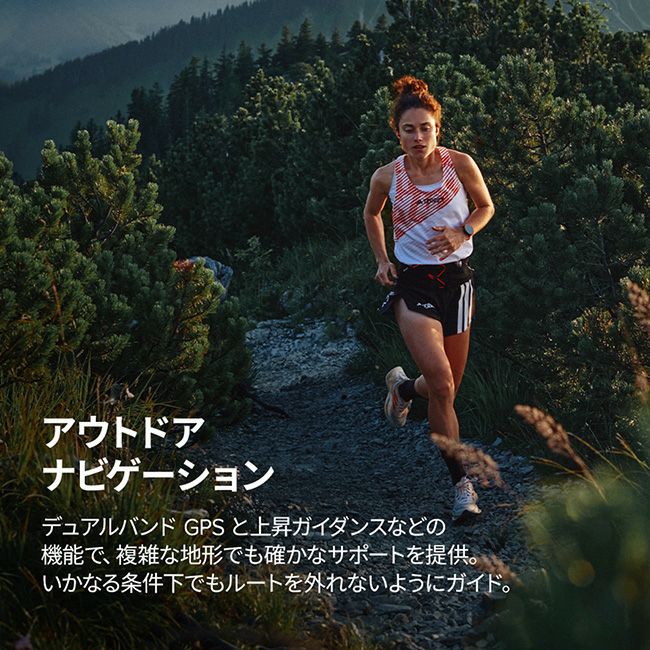 115以上のスポーツモードに対応し、トレイルランやスイムなど幅広いアクティビティを正確に記録します。