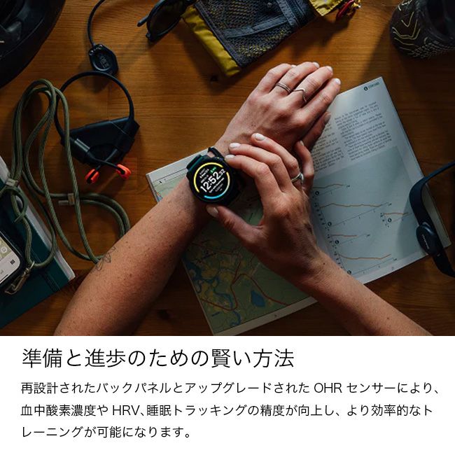 さらに、115種類以上のスポーツモードを搭載し、トレイルランニングやスイミング、マウンテンバイク、スキーなど、多彩なアクティビティを正確に記録。