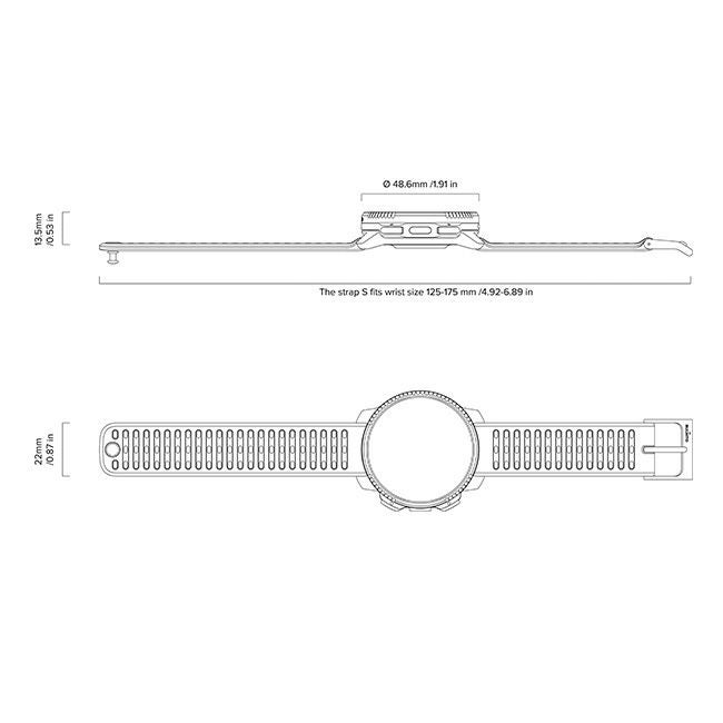■サイズ:48.6 x 48.6 x 13.5 mm(ストラップ 幅22mm、手首周り125~175mm)