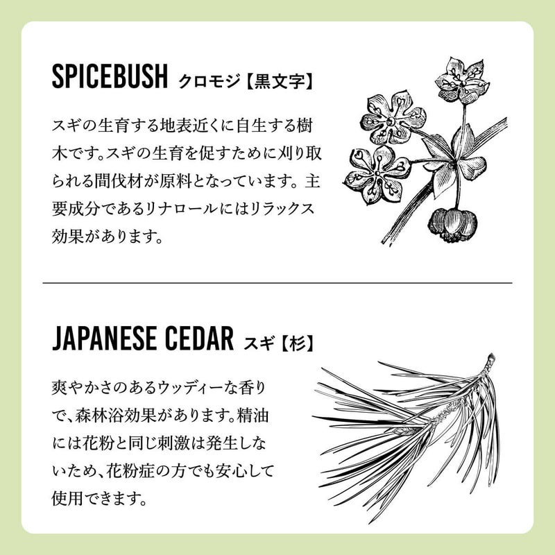 お風呂に入れない状況でも、まるで森の香りの入浴剤を使用した時のようなリフレッシュ・リラックス感が得られるようにとの想いから誕生しました。