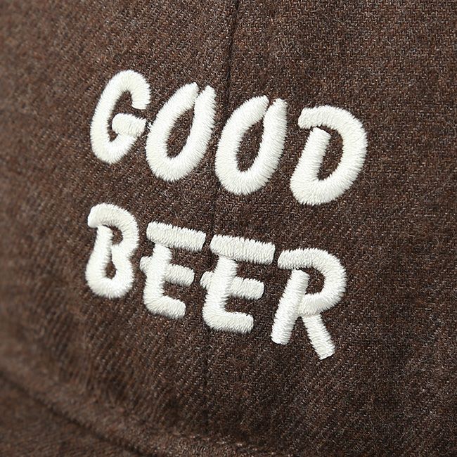 深みのあるブラウンボディが魅力的な、GOOD BEER 刺繍入りキャップ。