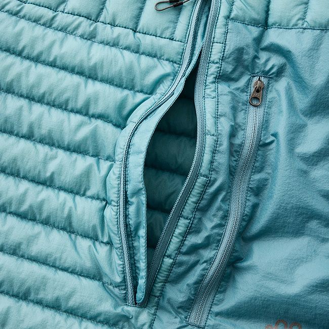 冬はミッドレイヤーとして、夏の高山では防寒着として、通年使えるライトダウンジャケットです。