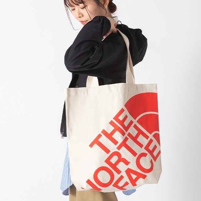 ビッグロゴがスタイリングのアクセントにもなる、オーガニックコットン製の中型トートバッグ