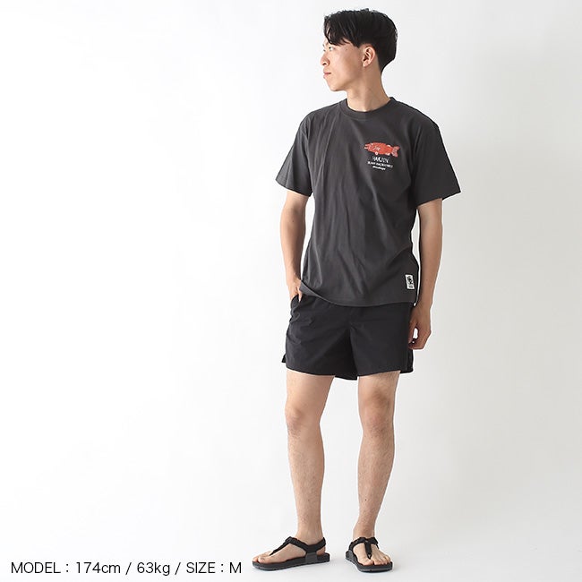 軽量で乾きやすいナイロン素材を使用した、シンプルなショートパンツ