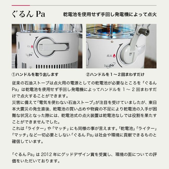 電気がなくても暖がとれる!手回し点火石油ストーブ