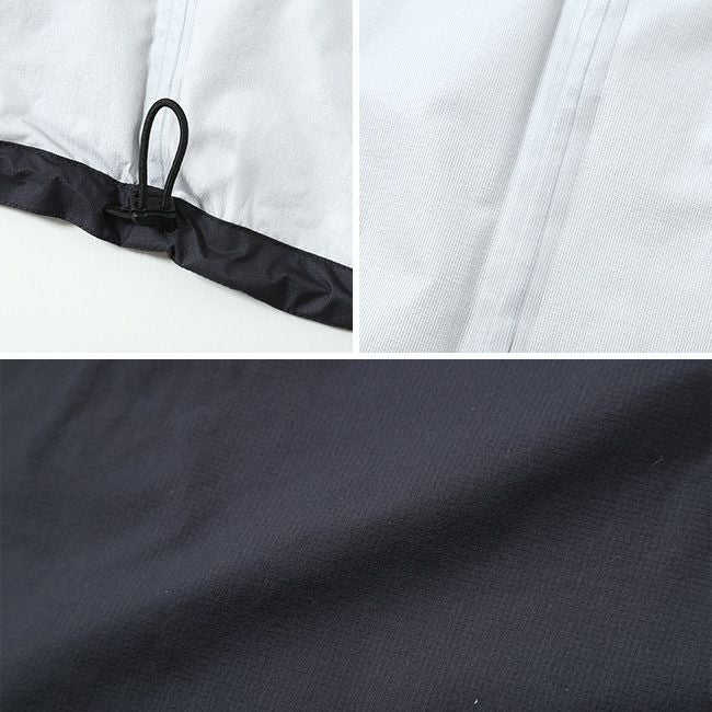 3レイヤーの生地は、透湿性に優れ、薄く軽量。
