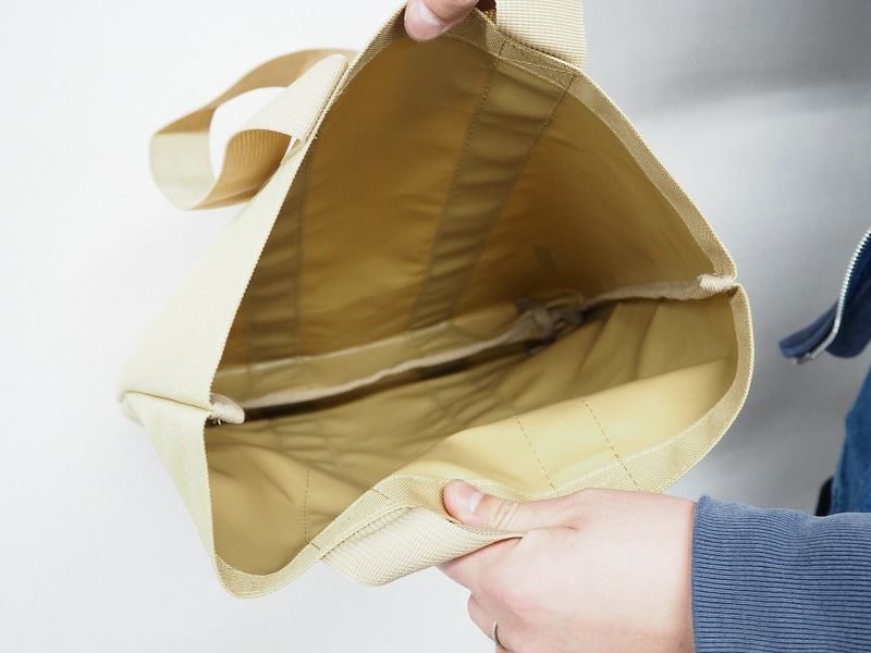 本体はベーシックなポリエステル素材、内側は汚れに強いPVCコーティングとなります。