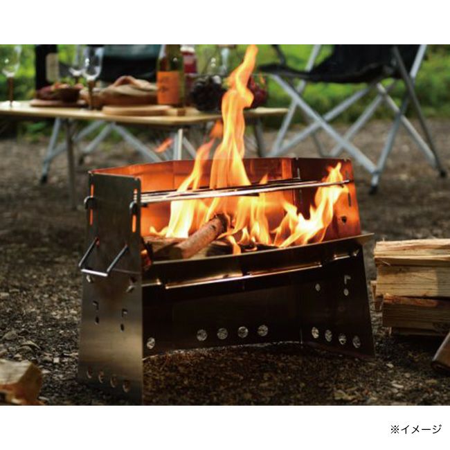 焚き火や炭火での調理も楽しめるステンレス製かまど。