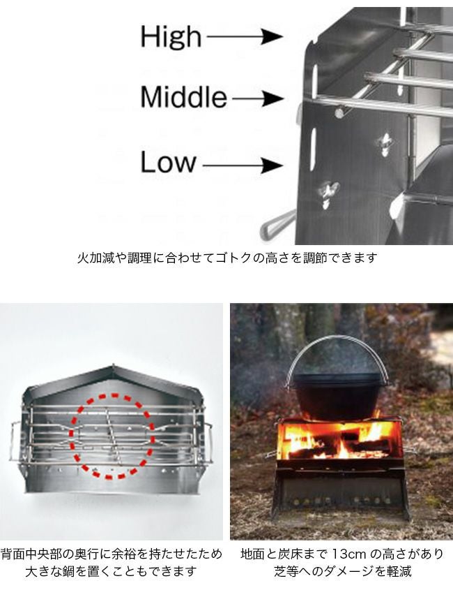 灰受けに薪の落下を防ぐ機能を追加し、強度もアップしました。