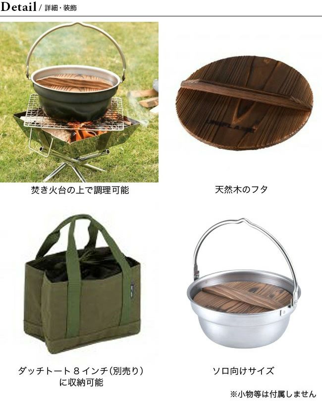 焚き火でも使いやすいソロ向けサイズの鍋です。