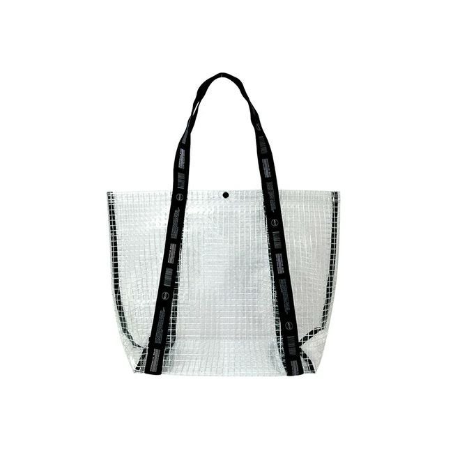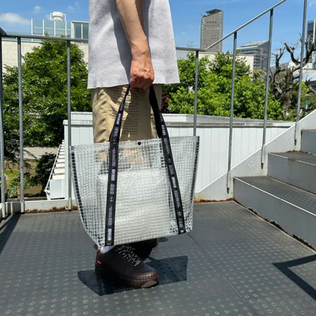 透明の塩化ビニールに、ポリエチレンの糸を格子状に入れた素材を使用したシリーズ。