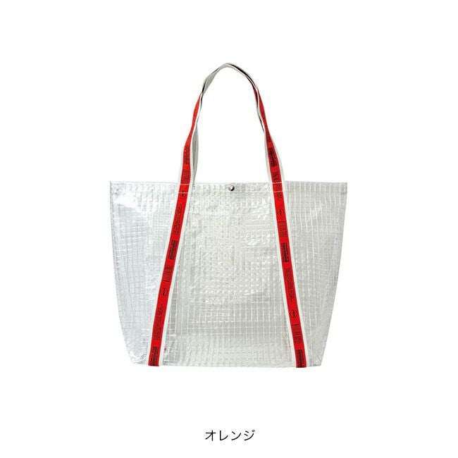 ベーシックなトートバッグ型にロゴテープがポイントになるデザインです。