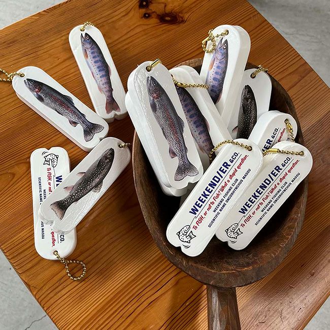 表面には人気の高い川魚3種をプリントし裏面にはWEEKEND(ER)らしいグラフィックをプリントしました。