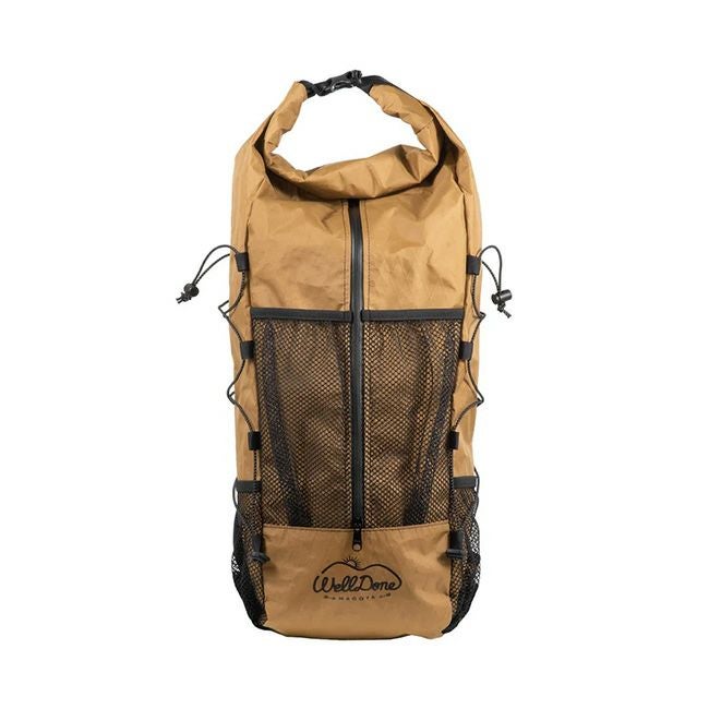 ハイキング用のバックパック(ザック)を使用している時、自転車に乗るライディングポジションだと、頭やヘルメットがバッグに当たってしまい、ストレスに感じたことはありませんか?また、ロールトップ型のバッグだと、底に入っている荷物の取りにくさを感じることがありませんか?様々なバックパックを使い、自らも試作を重ねる中で、ハイキング用のバックパックに発生してしまう課題をWelldoneならではに解決したのがこのChips Bagです。