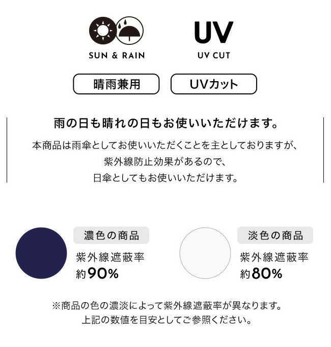 この製品は雨傘としてお使い頂くことを主としていますが、紫外線防止効果があります。